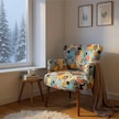Roma Modern Tekli Koltuk Berjer - Dijital Baskılı Kumaş - Ahşap Ayak - Baykuş Desen Baykuş