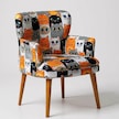 Roma Modern Tekli Koltuk Berjer - Dijital Baskılı Kumaş - Ahşap Ayak - Kedili 1 Kedili - 1