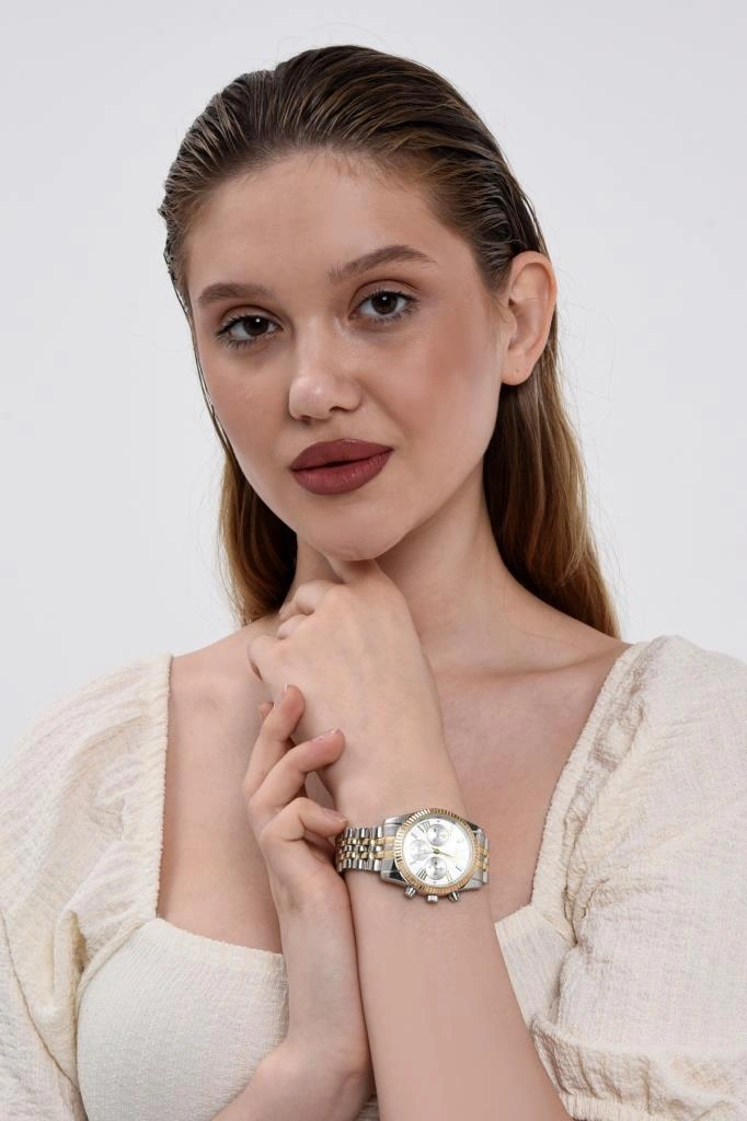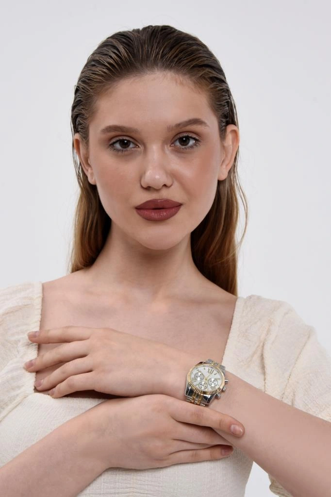 Roma Rakam Kasa Detaylı Altın Gümüş Kadın Kol Saati Gümüş