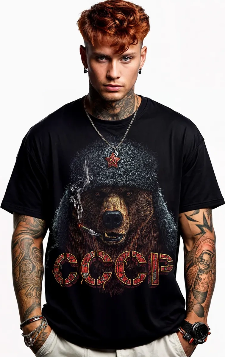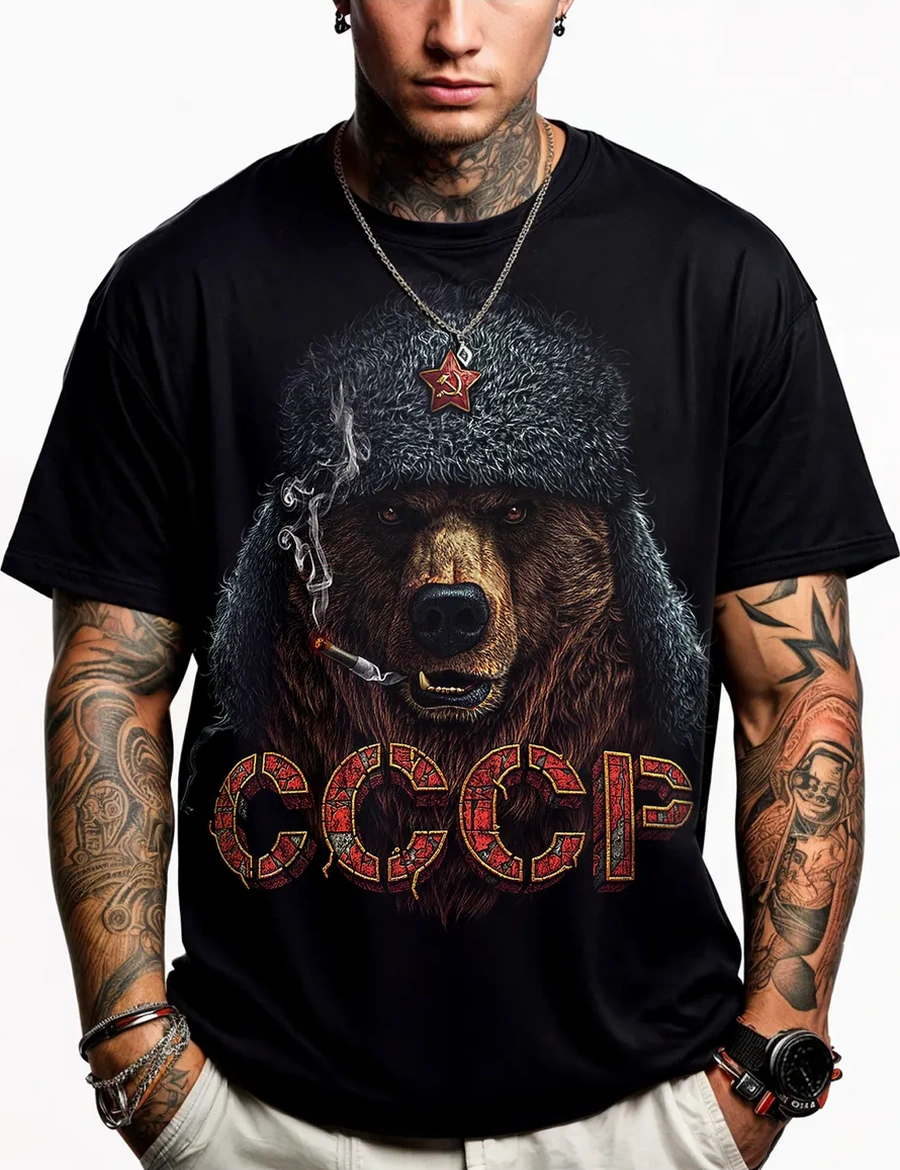 Romaxtex Sovyetler Birliği Ayısı Baskılı Işıklı Tişört 251928753 Siyah