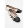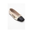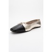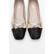 Romy Altın-siyah Cilt Hakiki Deri Küt Burunlu Fiyonklu Kadın Babet Ayakkabı Altın - Siyah