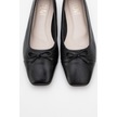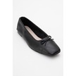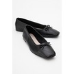 Romy Siyah-siyah Cilt Hakiki Deri Küt Burunlu Fiyonklu Kadın Babet Ayakkabı Siyah