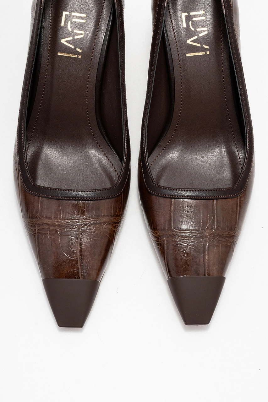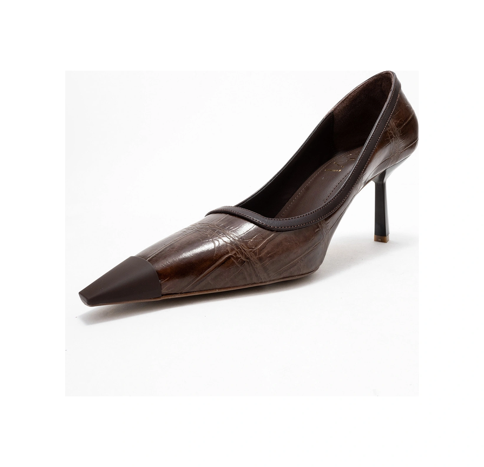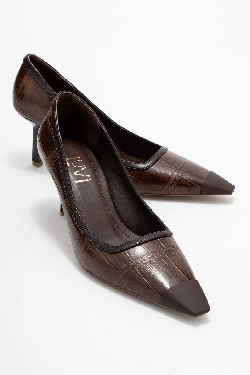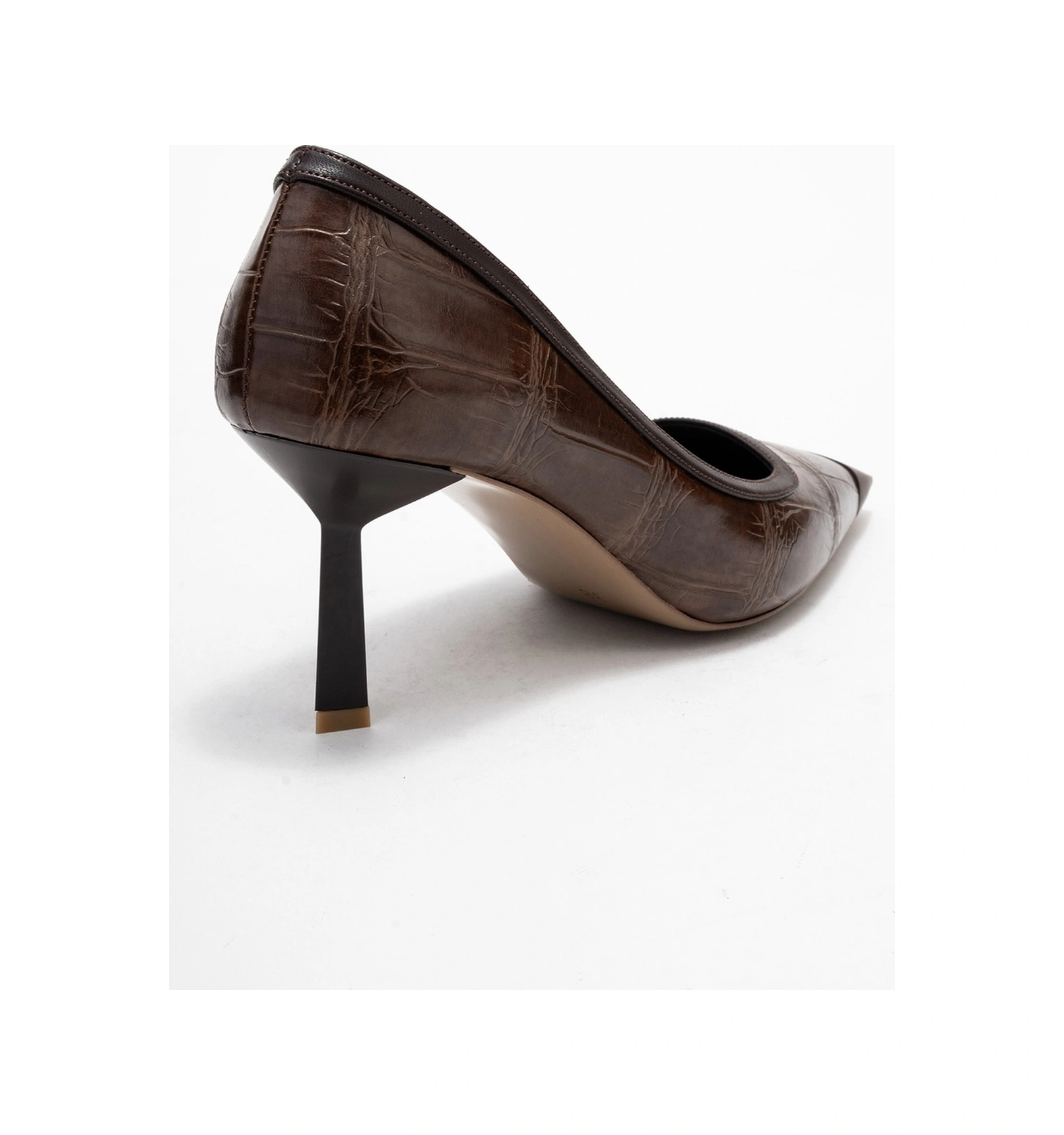 Rona Açık Kahverengi Baskı Mat Burunlu Kadın Topuklu Ayakkabı Açık Kahverengi