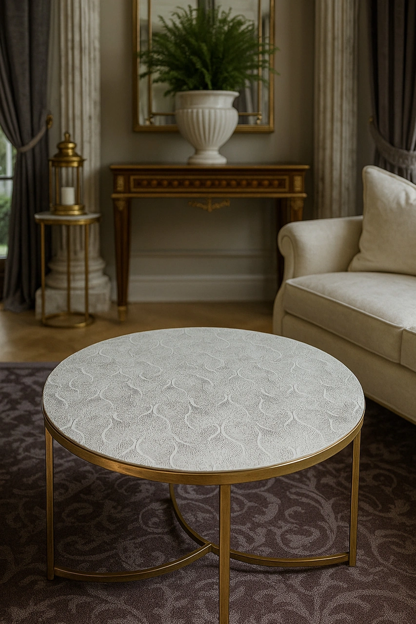 Rona Home Yuvarlak Orta Sehpa Masa Örtüsü Hasır Lüks Pvc Silinebilir, Çiçek Desenli, Şeffaf Bej Krem