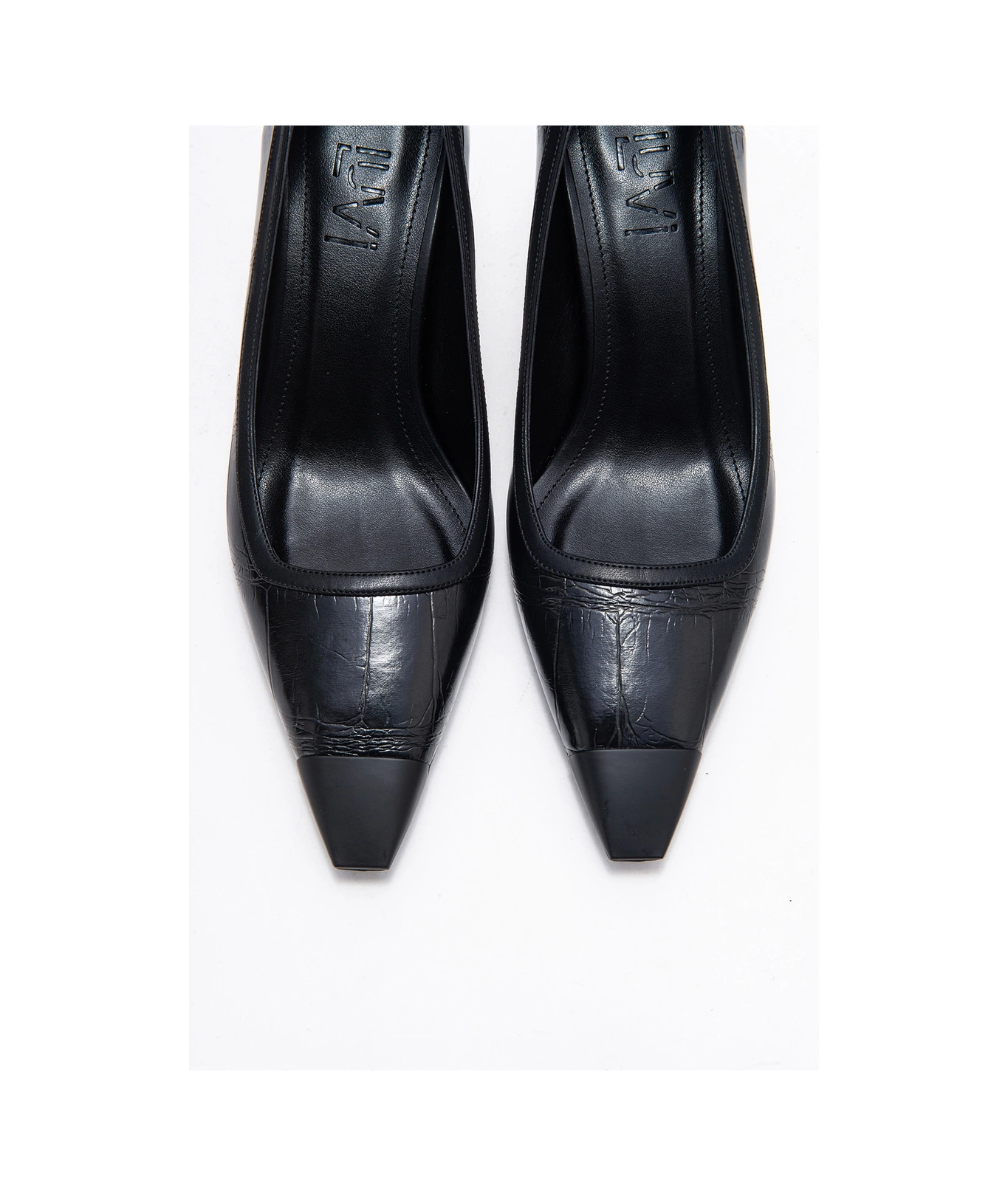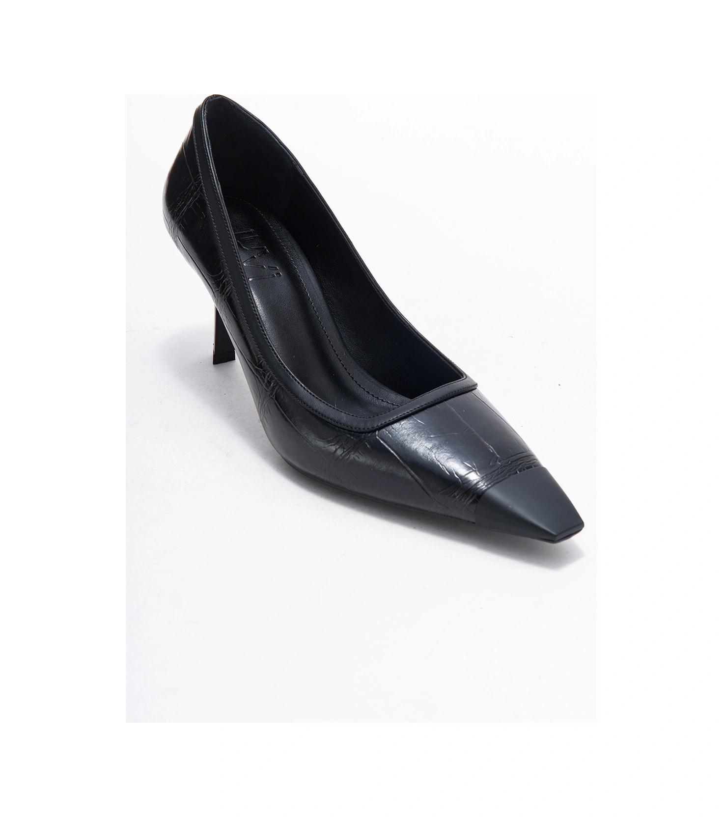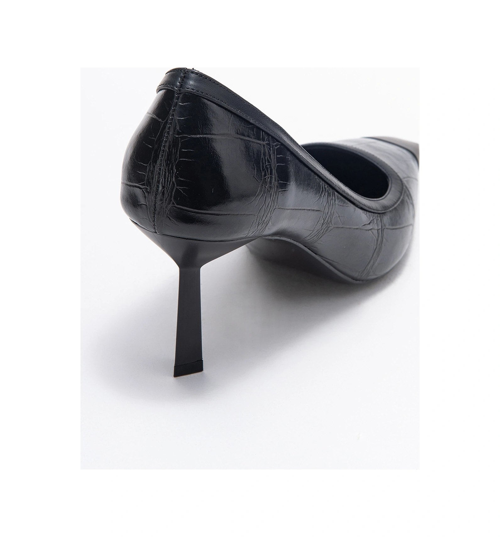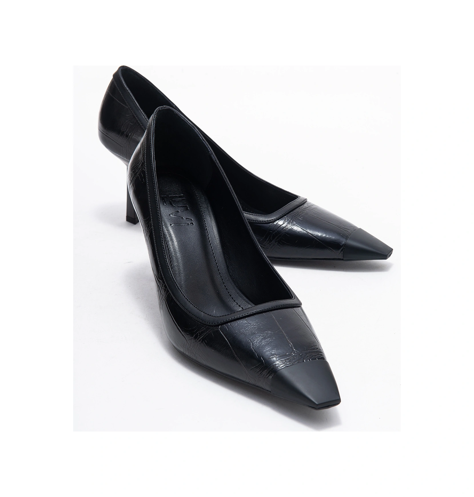 Rona Siyah Baskı Mat Burunlu Kadın Topuklu Ayakkabı Siyah