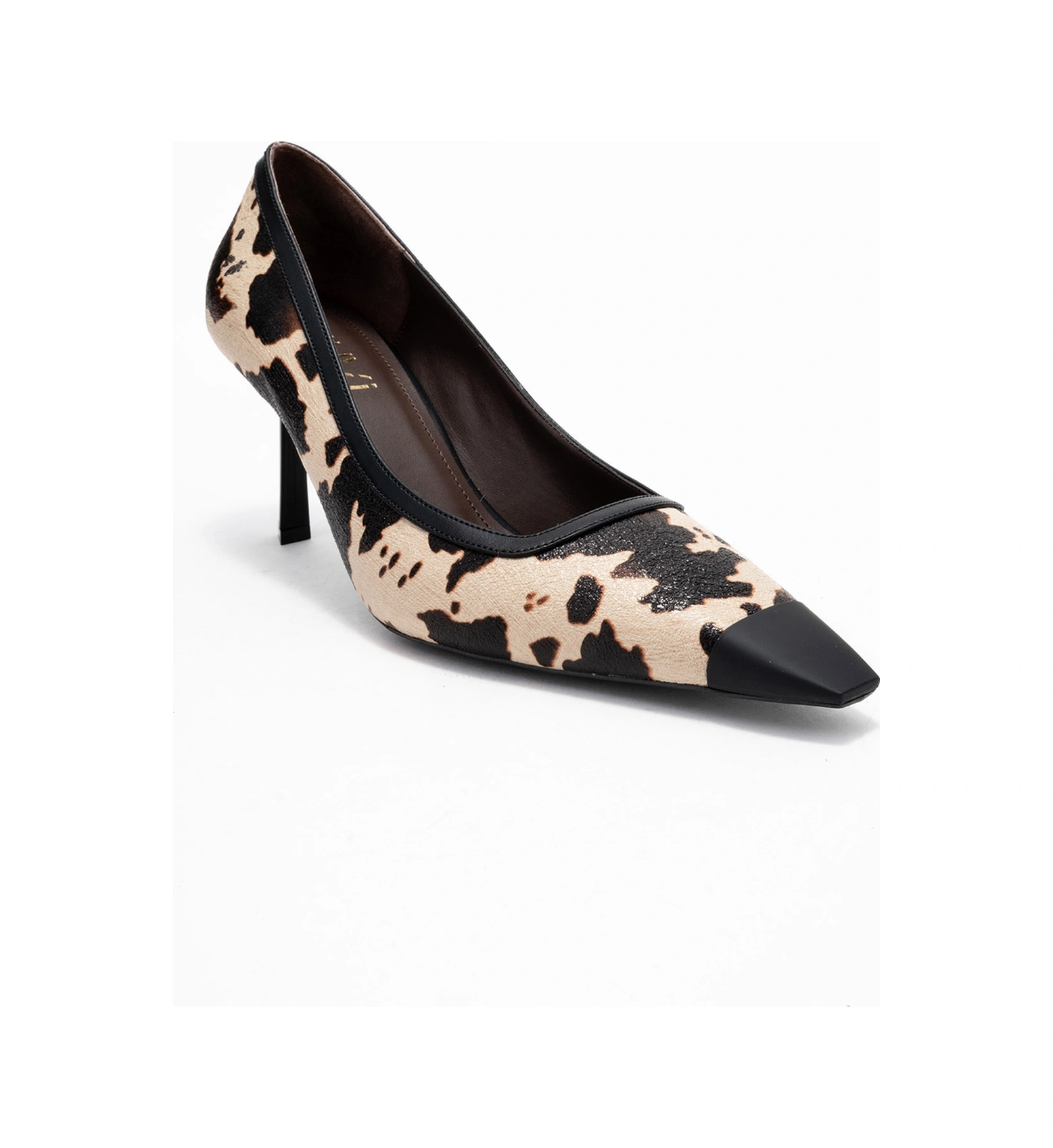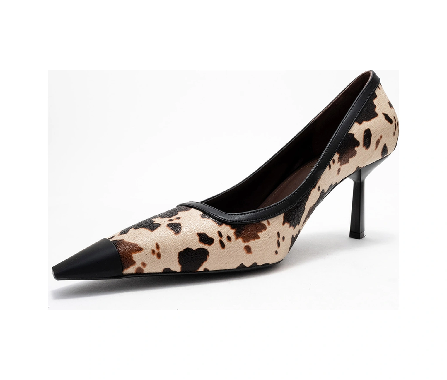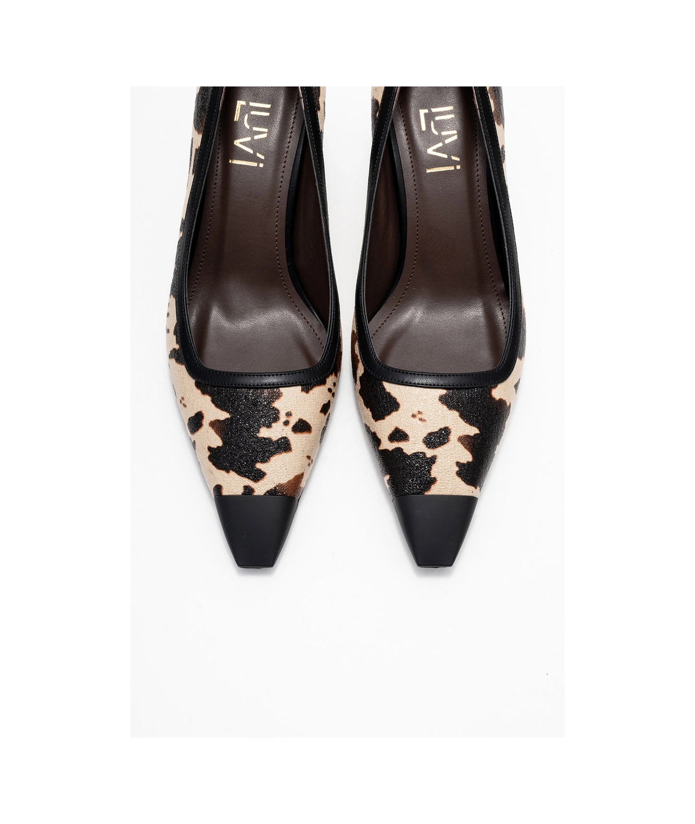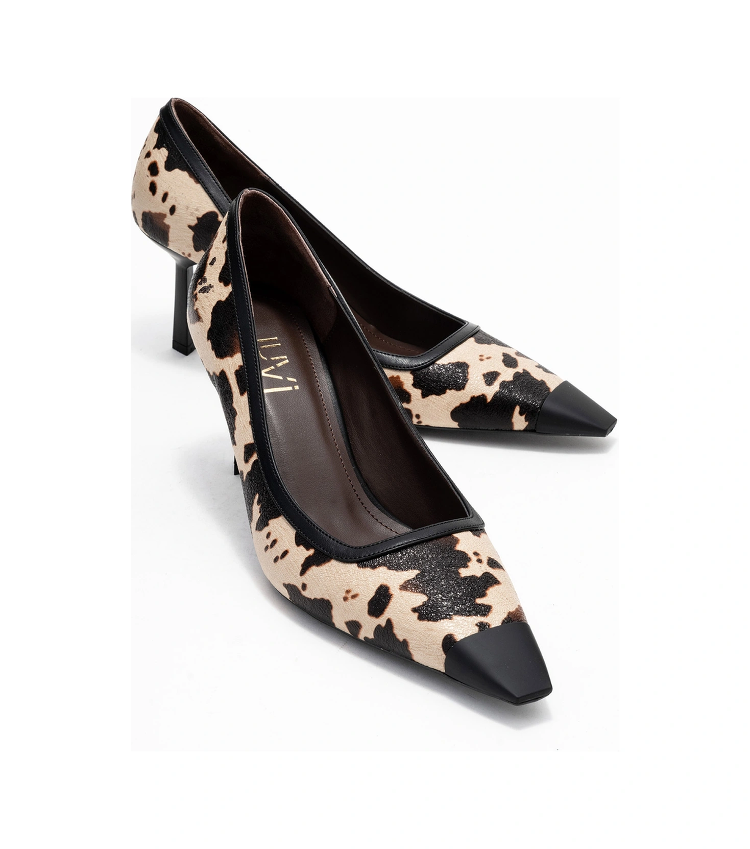 Rona Siyah Bej Desenli Mat Burunlu Kadın Topuklu Ayakkabı Bej