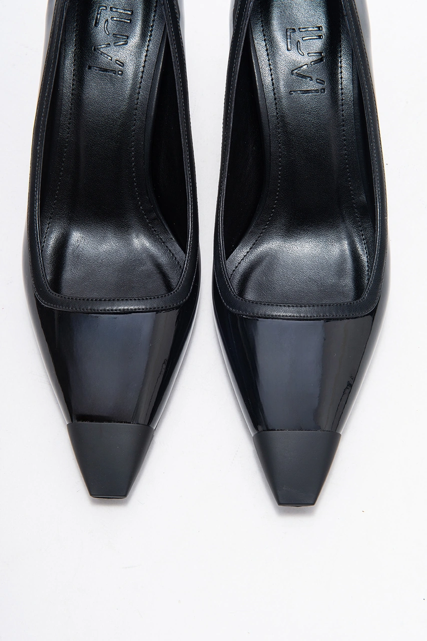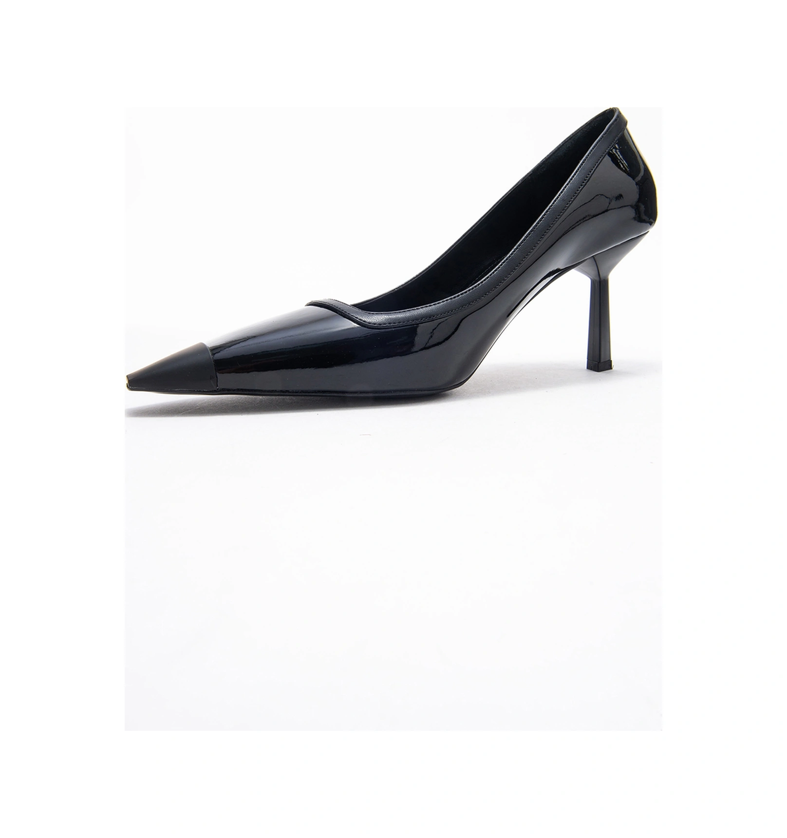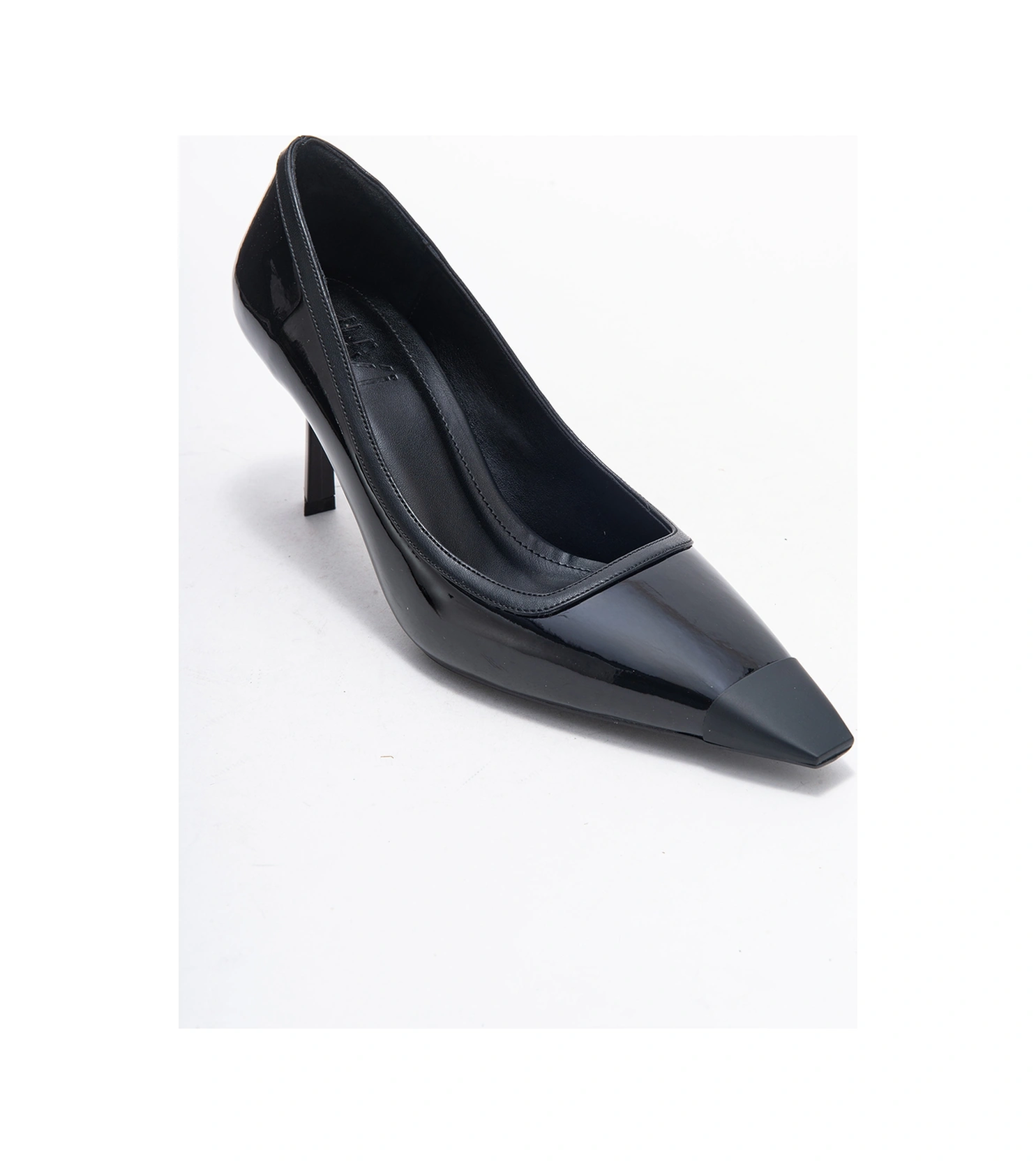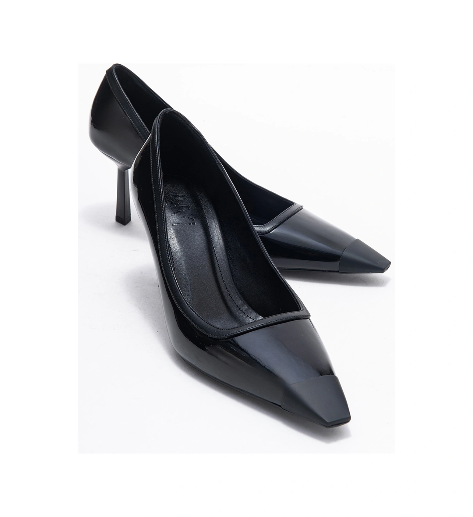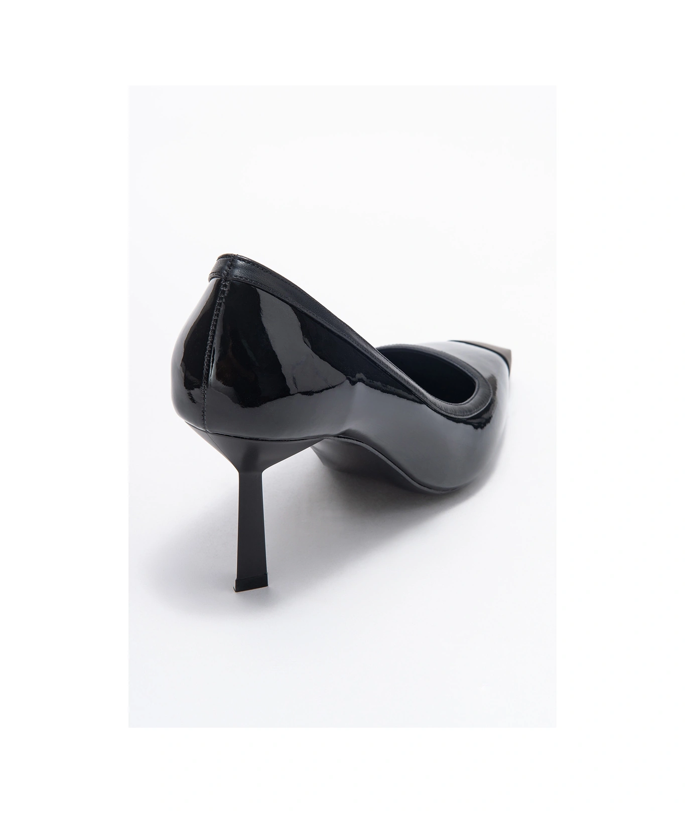 Rona Siyah Rugan Mat Burunlu Kadın Topuklu Ayakkabı Rugan Siyah