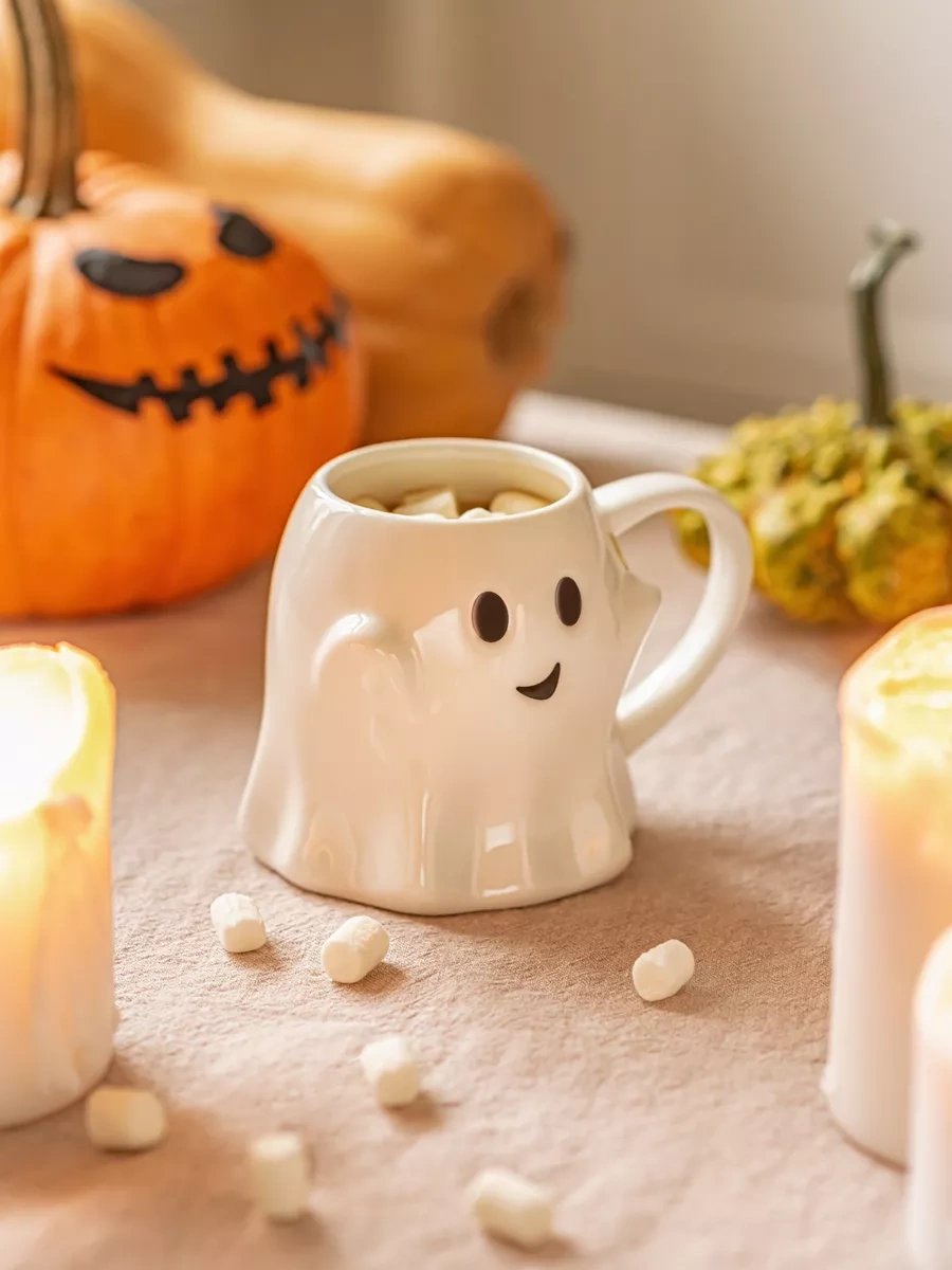 Roomi Çay Ve Kahve İçin Seramik Kupa "hayalet" Figürlü 182368554 Beyaz