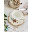 Çilek Ve Çiçeği Desenli Hediyelik Baskılı Porselen Beyaz Lüks Kupa Bardak Beyaz