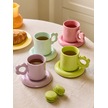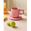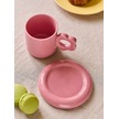 Roomi Seramik Çay Takımı 325 Ml, Kup Ve Halka Desenli Fincan Takımı 458193317 Pembe