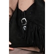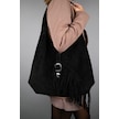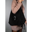 Rosalın Siyah Hakiki Süet Deri Püsküllü Kadın Omuz Çantası Siyah Süet Siyah