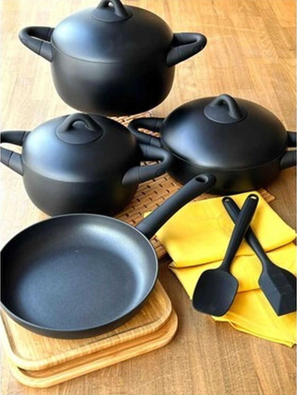 Rossev Dolce Döküm Tencere Seti Siyah 7 Parça Bakır - Siyah