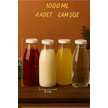 Rotanev 4 Adet Beyaz Plastik Kapaklı Cam Şişe 1 Litre Şeffaf Sürahi Süt, Ayran, Su, Limonata Meşrubat Şişesi
