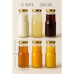 Rotanev Şeffaf Sürahi Süt, Ayran, Su, Limonata, Meşrubat Şişesi Metal Gold Kapaklı Cam Şişe 6 Adet 250 ML