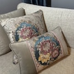 "royal" Dokulu Çiçek Desenli Kırlent - 45x45 Vizon - Mavi - Pembe