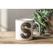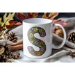 S Baş Harf Çiçek Desenleri İle Natural Tarz Kupa Bardak - Kişiye Özel Çiçekli Kahve Çay Bardak - Beyaz