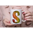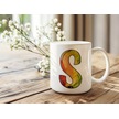 S Harf Yaprak Renkleri İle Kupa Bardak - Kişiye Özel Alfabe Harfli Bardak - Hediye Beyaz