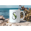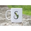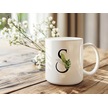S Harf Zarif Yaprak Desenli Kupa Bardak - Naturel Sade Alfabe Harfli Bardak - Kişiye Özel Hediye Beyaz