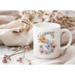 S Harfi Çiçekli Kupa Bardak - Soft Renk Çiçek Ve Kelebek Desenli Zarif Kahve Kupası - Bohem Beyaz