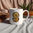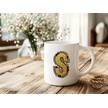 S Harfi Gold Simli Kupa Işıltılı Alfabe Harf Tasarımlı Kahve Kupası - Kişiye Özel Hediye Beyaz