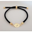 Ş Harfine Özel 14 Ayar Altın Plakalı Oval Motifli İpek Örgülü Hediye Bileklik-320harf-siyah Altın
