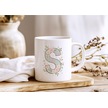 S Harfli Çiçek Desenli Kupa Bardak - Ekose Desenli Yeşil Pembe Desenli Tasarım - Kişiye Özel Hediye Beyaz