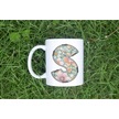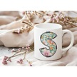 S Harfli Pastel Çiçek Desenli Kahve Kupası - Kişiye Özel Çiçekler Koleksiyonu Bardak - Hediye Beyaz