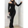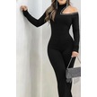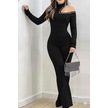 S-pazarım Kadın Tek Omuzdan Açık Balıkçı Yaka Taş Detaylı Uzun Ithal Krep Tulum Siyah