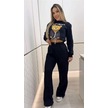 S-pazarım Kadın Uzun Kollu Bisiklet Yaka Desenli Iki Iplik Şardonlu Bluz Ve Pantolon Ikili Takım Siyah