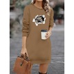 S-pazarım Kadın Uzun Kollu Bisiklet Yaka Kısa Viskon Iki Iplik Elbise Bej