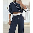 S-pazarım Kadın Uzun Kollu Kapşonlu Viskon Iki Iplik Füme Bluz Ve Pantolon Ikili Takım Gri