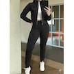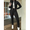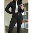 S-pazarım Kadın Uzun Kollu Önden Fermuarlı Kısa Modal Ceket Ve Pantolon Ikili Takım Siyah