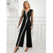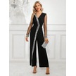 S-pazarım Kadın Uzun V Yakalı Önden Pulpayet Detaylı Tüllü Uzun Ithal Krep Tulum Siyah