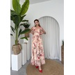 Eteği Volanlı Uzun Elbise Kırık Beyaz