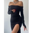 Madonna Yaka Dar Kalıp Uzun Kollu Elbise Bordo