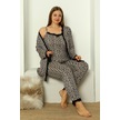 Sabahlıklı Dantel Detaylı Pegasus Kadın Pijama Takımı-çeyizlik Takım- Geniş Beden Aralığı Leopar
