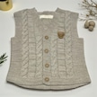 Saç Örgü Detaylı Armalı Triko Yelek Vizon