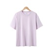 Saf Pamuk Bol Günlük Düz Renk Yuvarlak Yaka Kısa Kollu Açık Mor