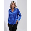 Safir Mavi İlkbahar Ve Sonbahar Kadın Gömlek Saten Gömlek Mizaç Banliyö Uzun Kollu Üst Mavi
