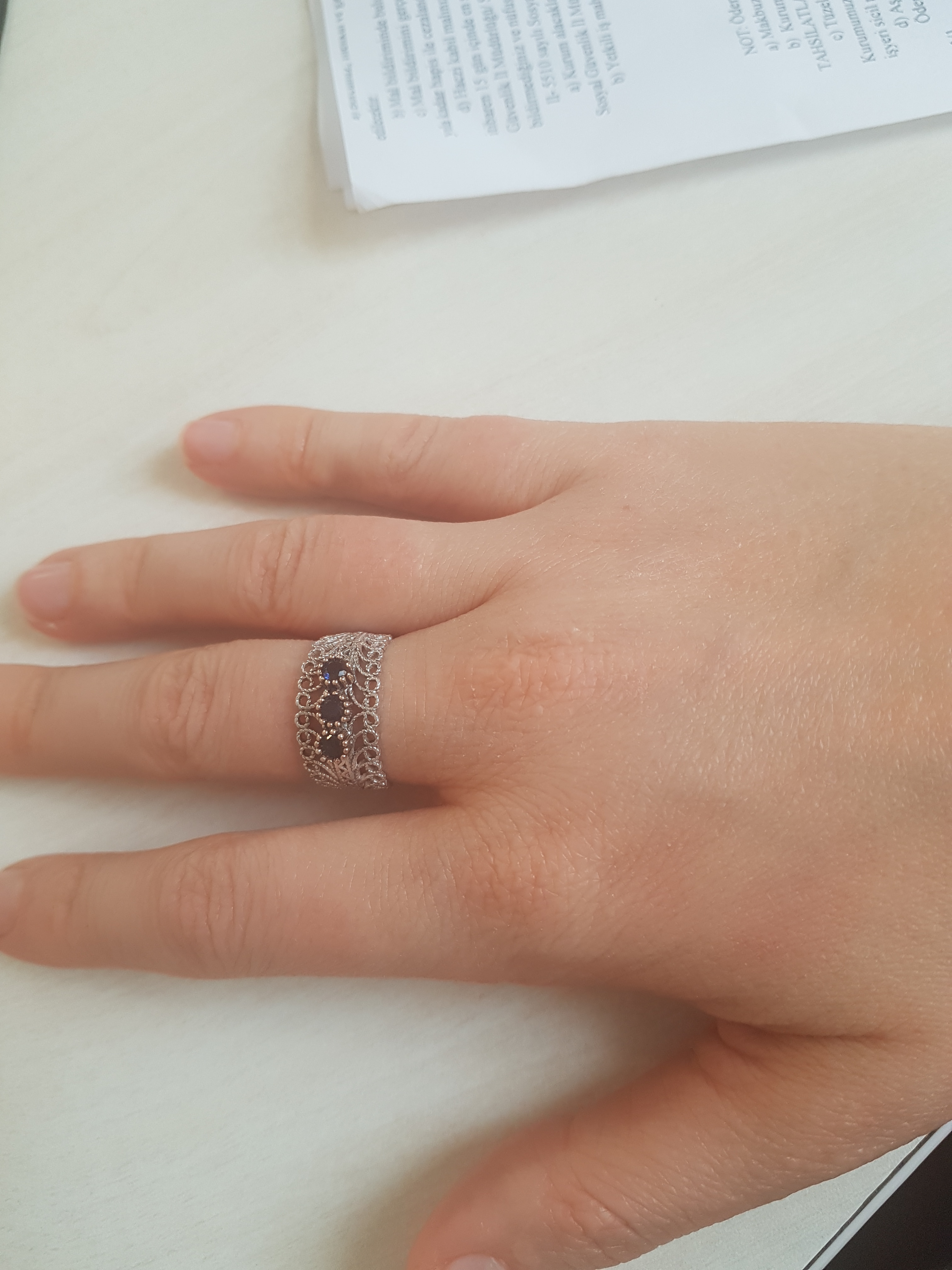 Safir Taşlı Telkari Gümüş Yüzük - 512675217