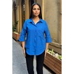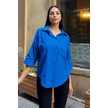 Saks Truvakar Kol, Oval Kesim, Terletmez, Flamlı Keten Salaş Gömlek Saks