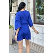 Monamise Kadın Petrol Mavisi Kruvaze Yaka Mini Elbise 21007 Mavi
