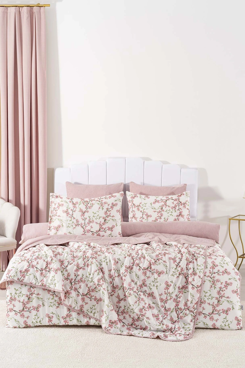 Sakura Çift Kişilik Nevresimli Pike Takımı - 7 Parça Çeyiz Seti Çok Renkli