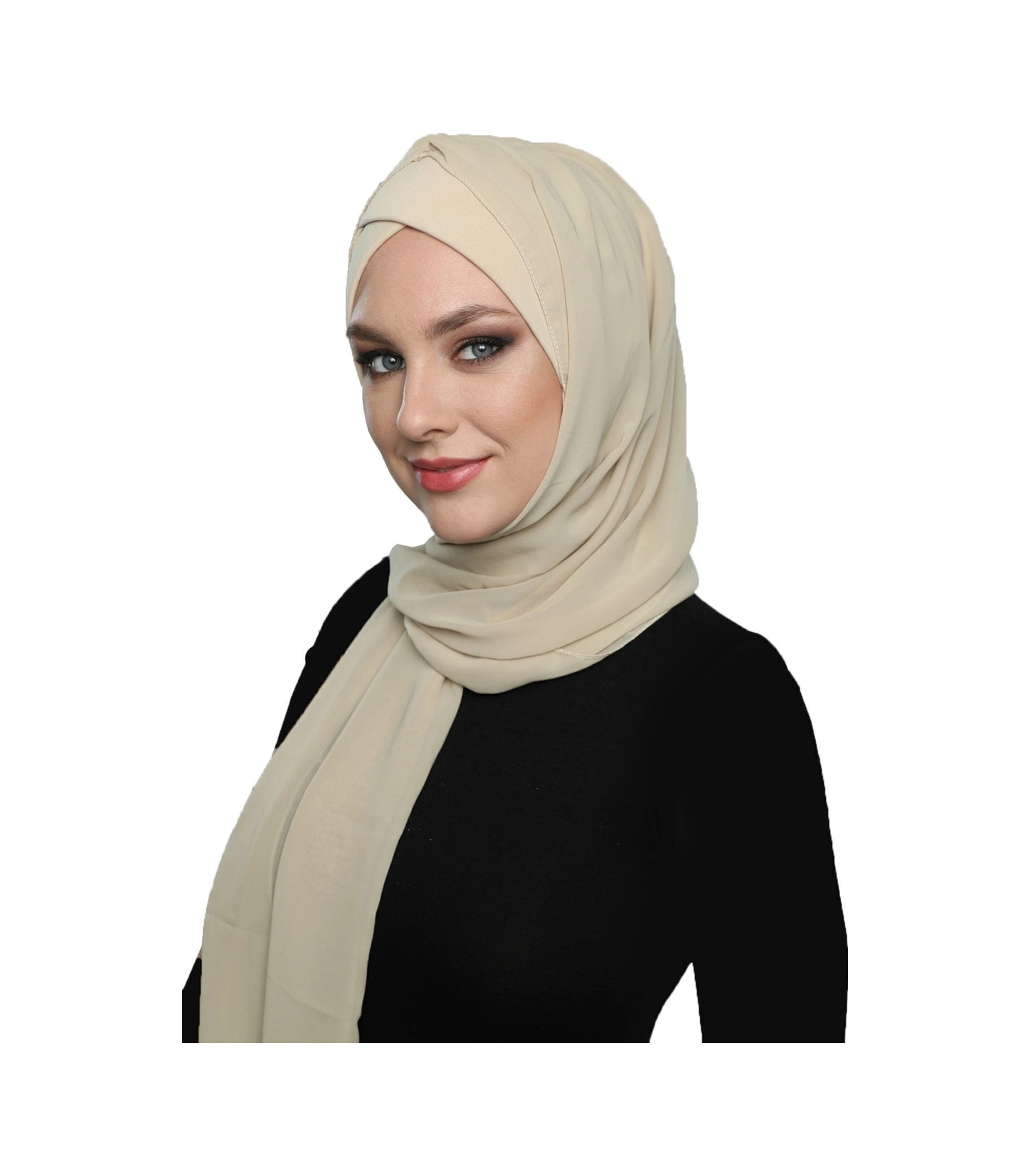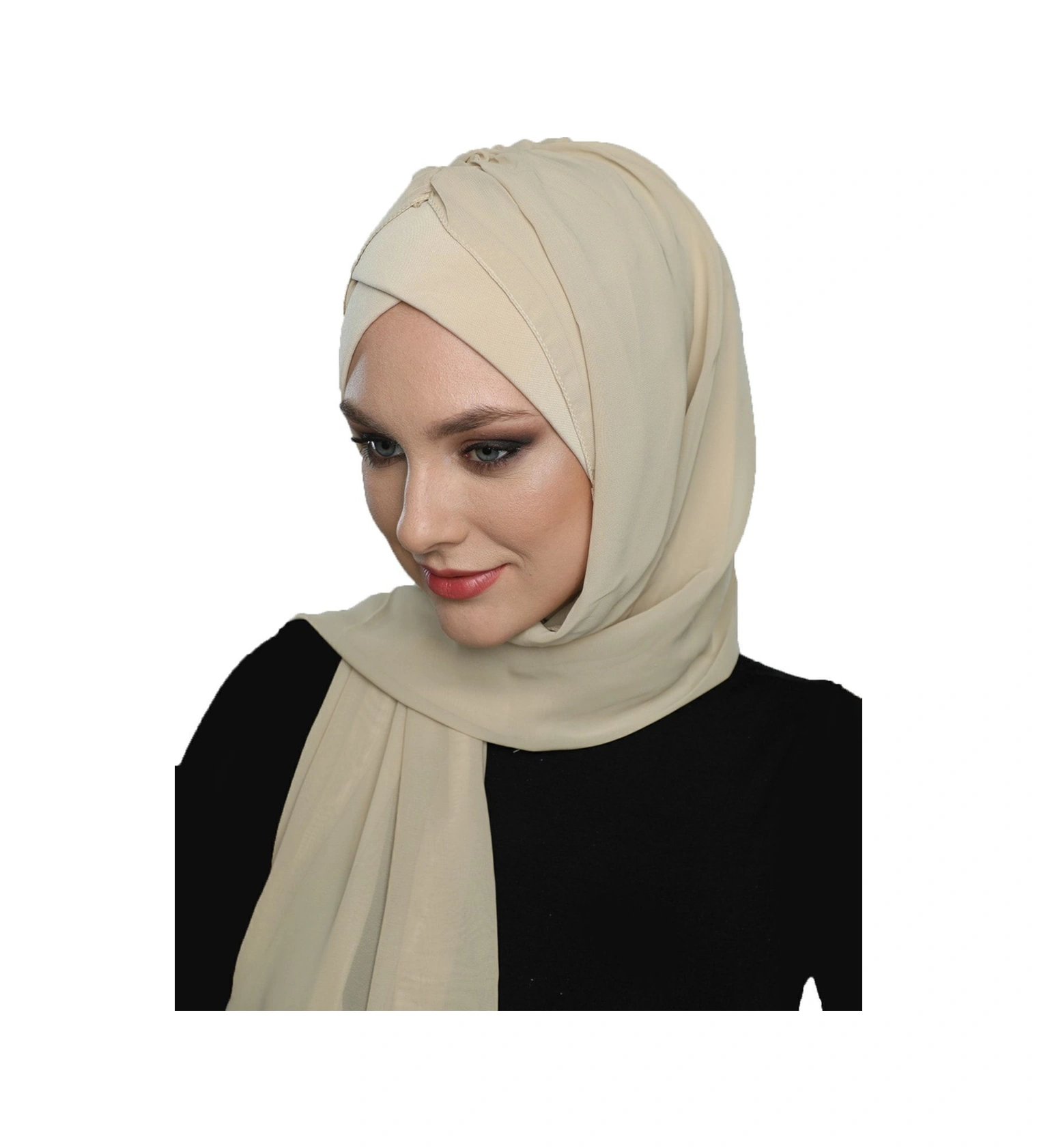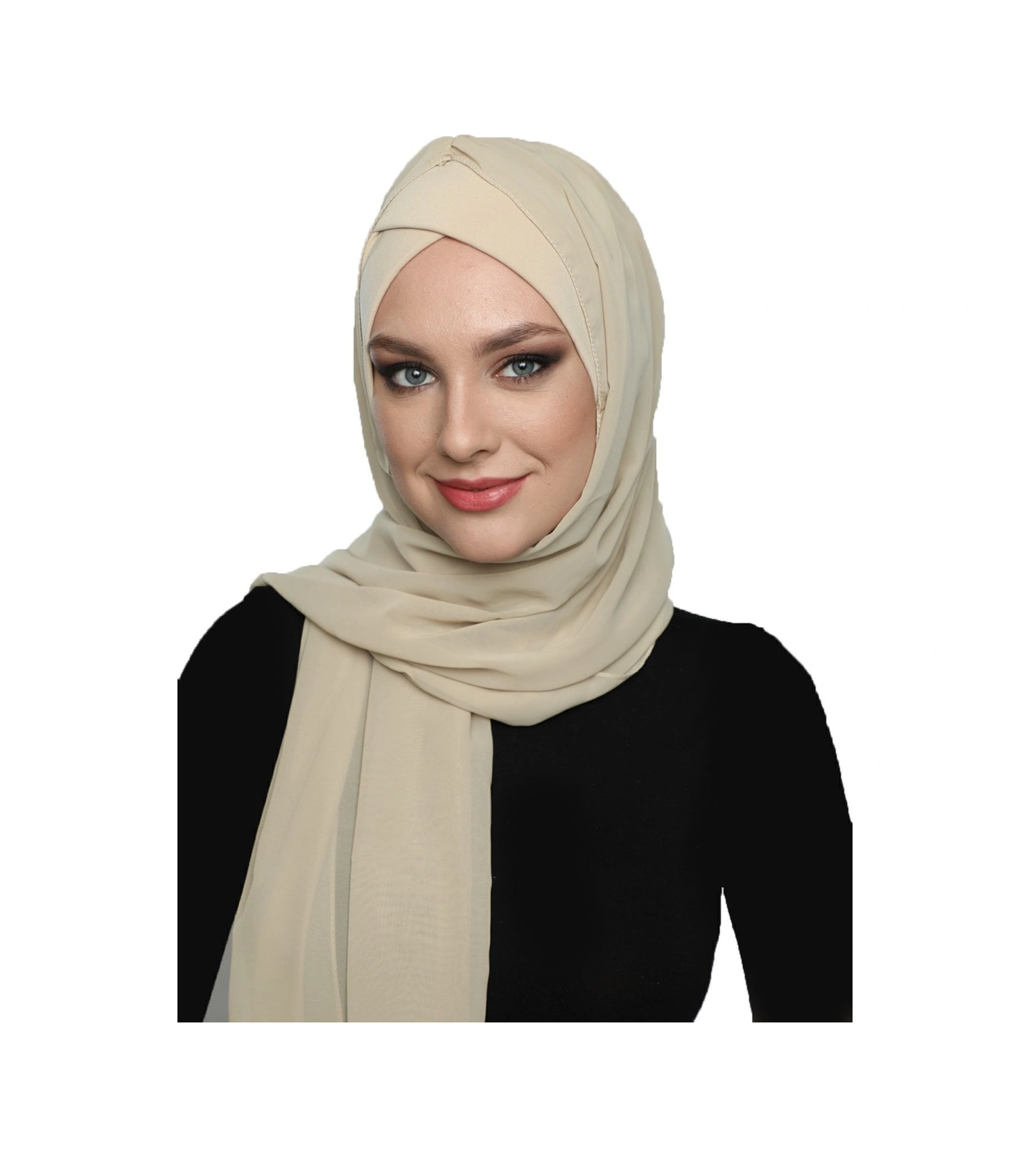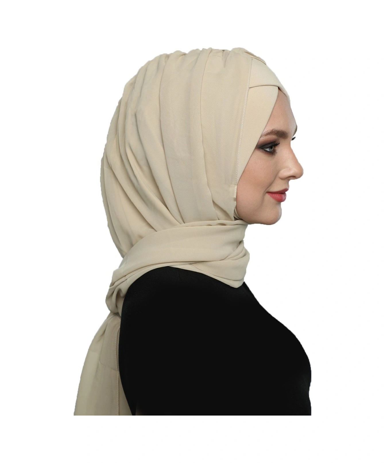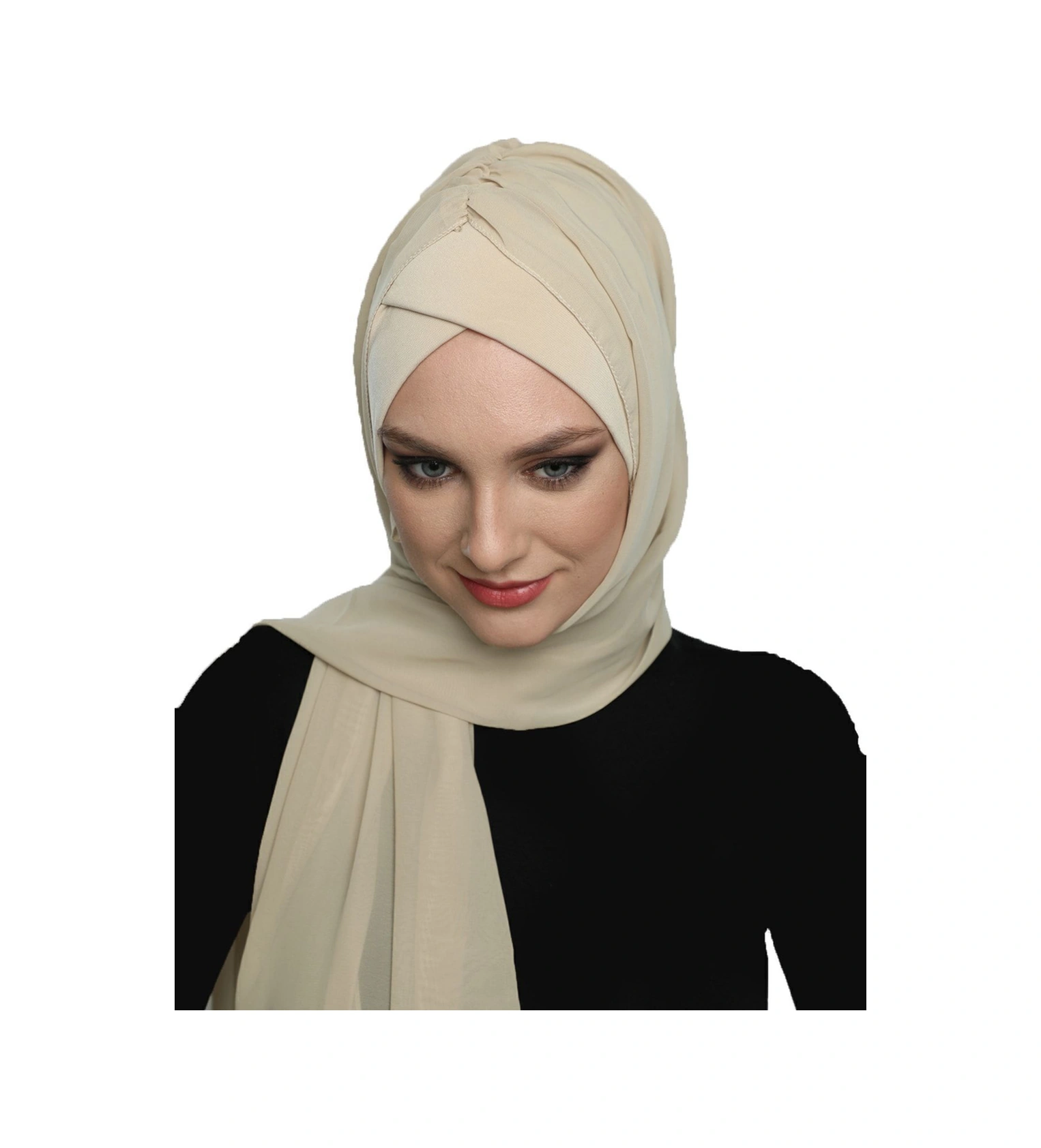 Şallı Takmatik Sade Bej Hazır Türban Tesettür Bone Namaz Örtüsü Bej