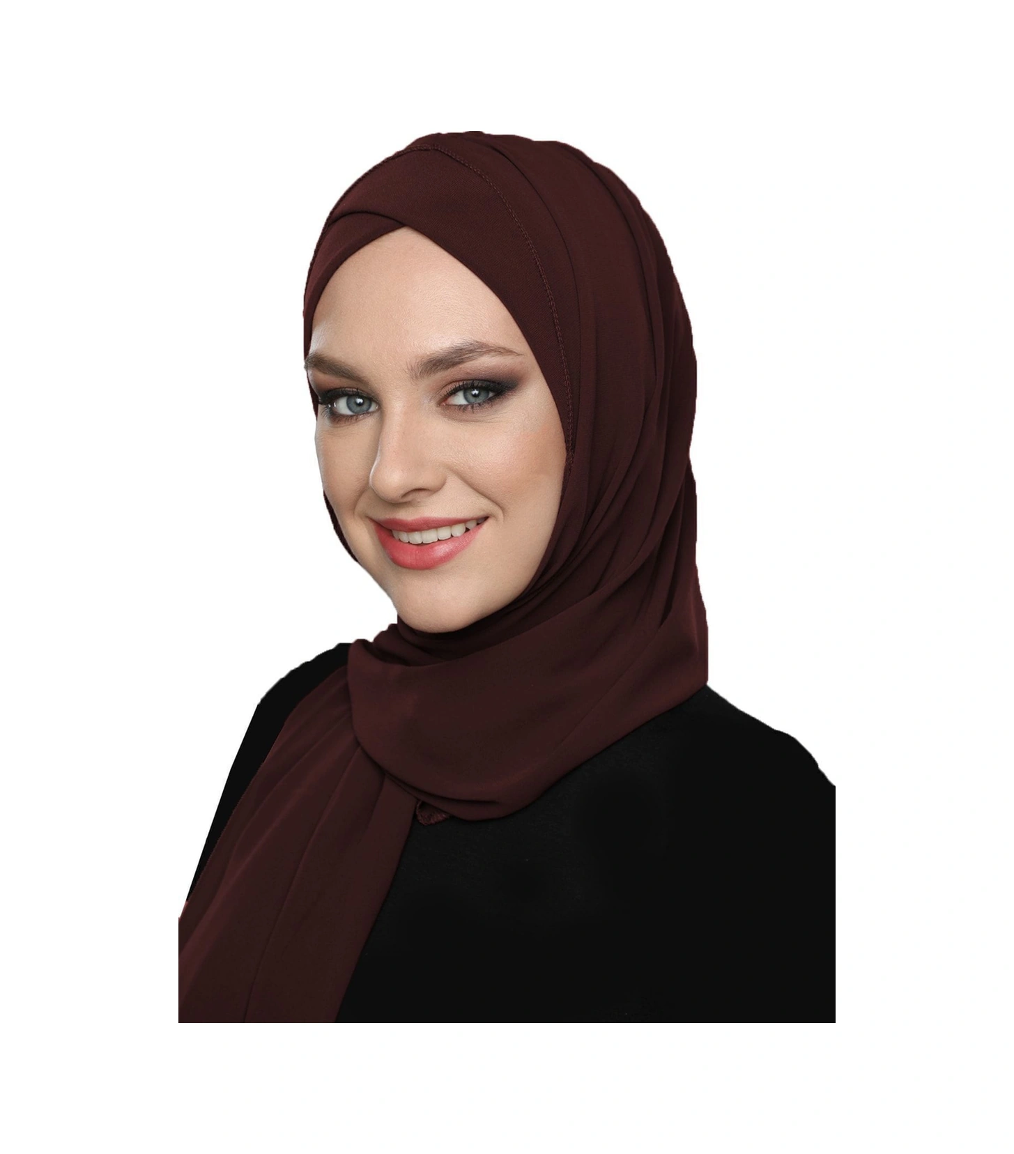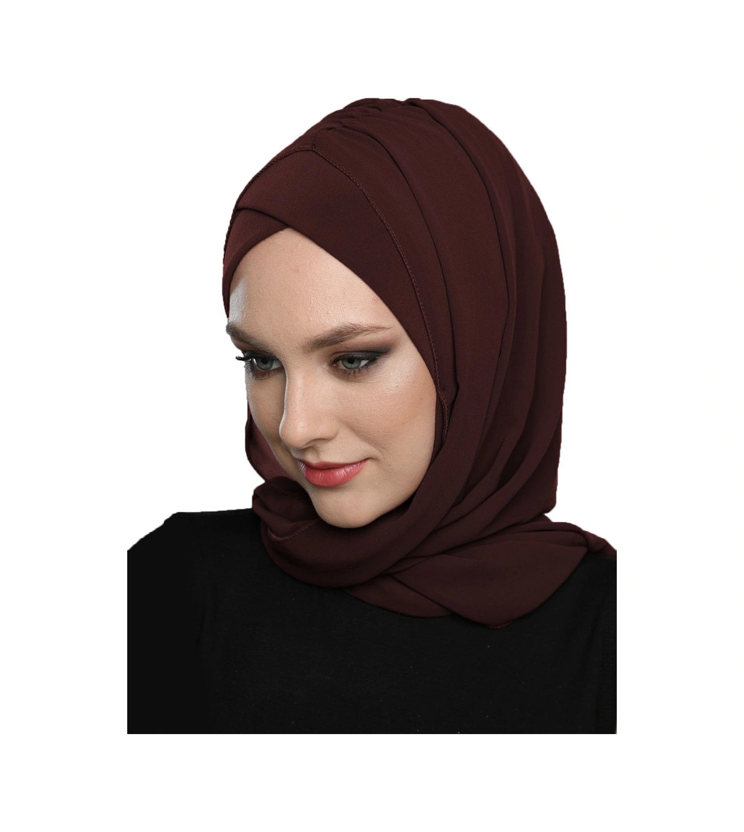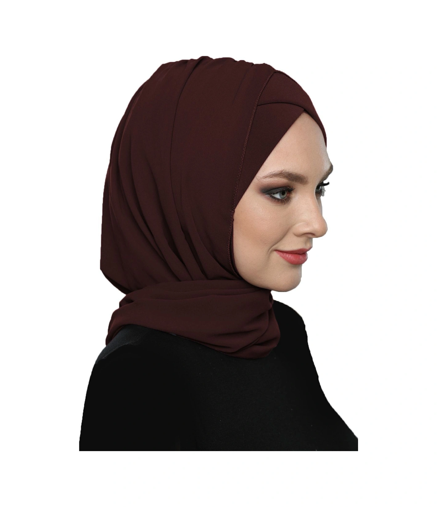 Şallı Takmatik Sade Kahve Hazır Türban Tesettür Bone Namaz Örtüsü Kahve