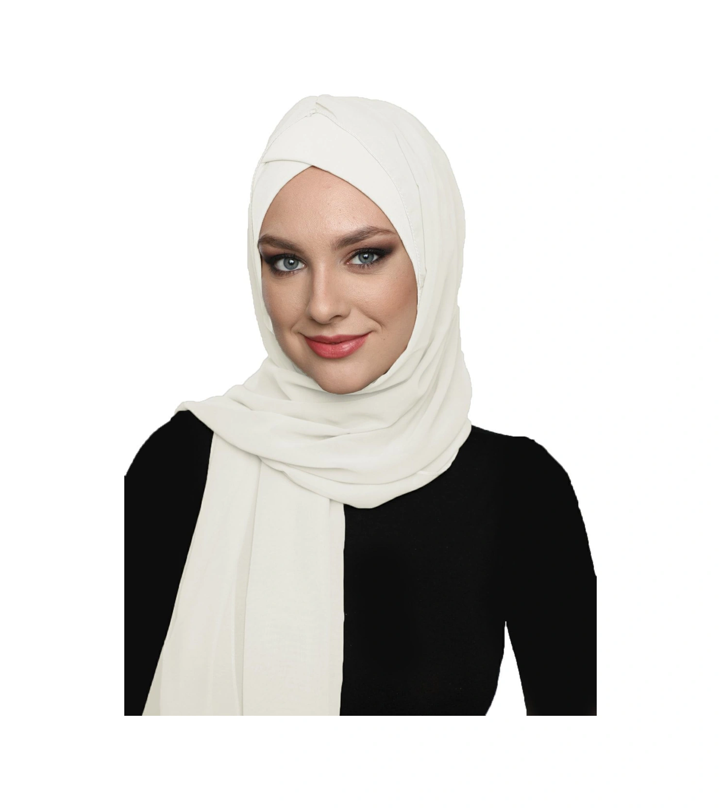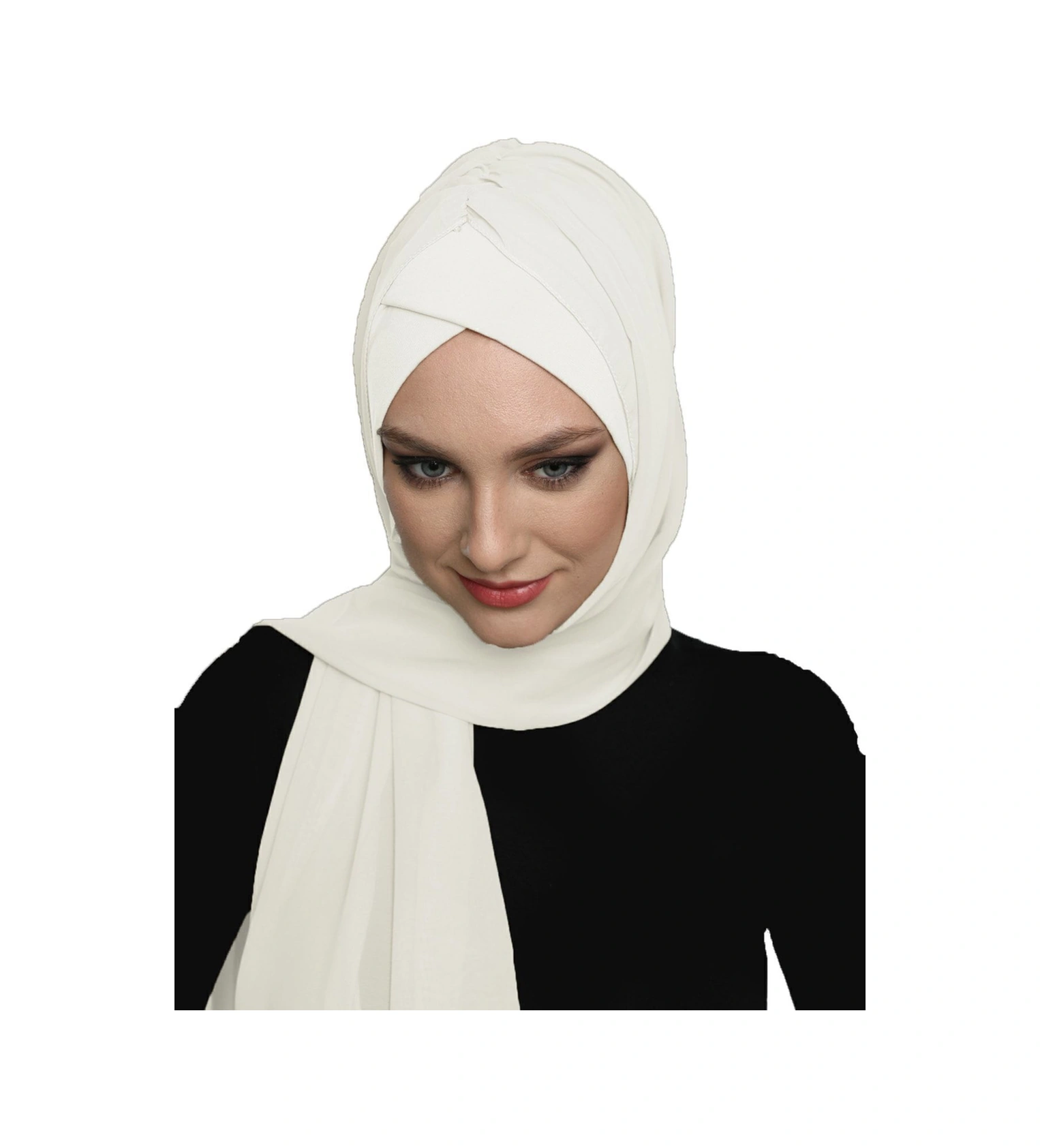 Şallı Takmatik Sade Krem Hazır Türban Tesettür Bone Namaz Örtüsü Krem