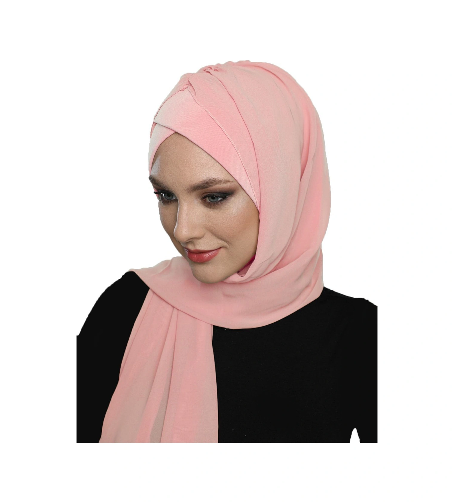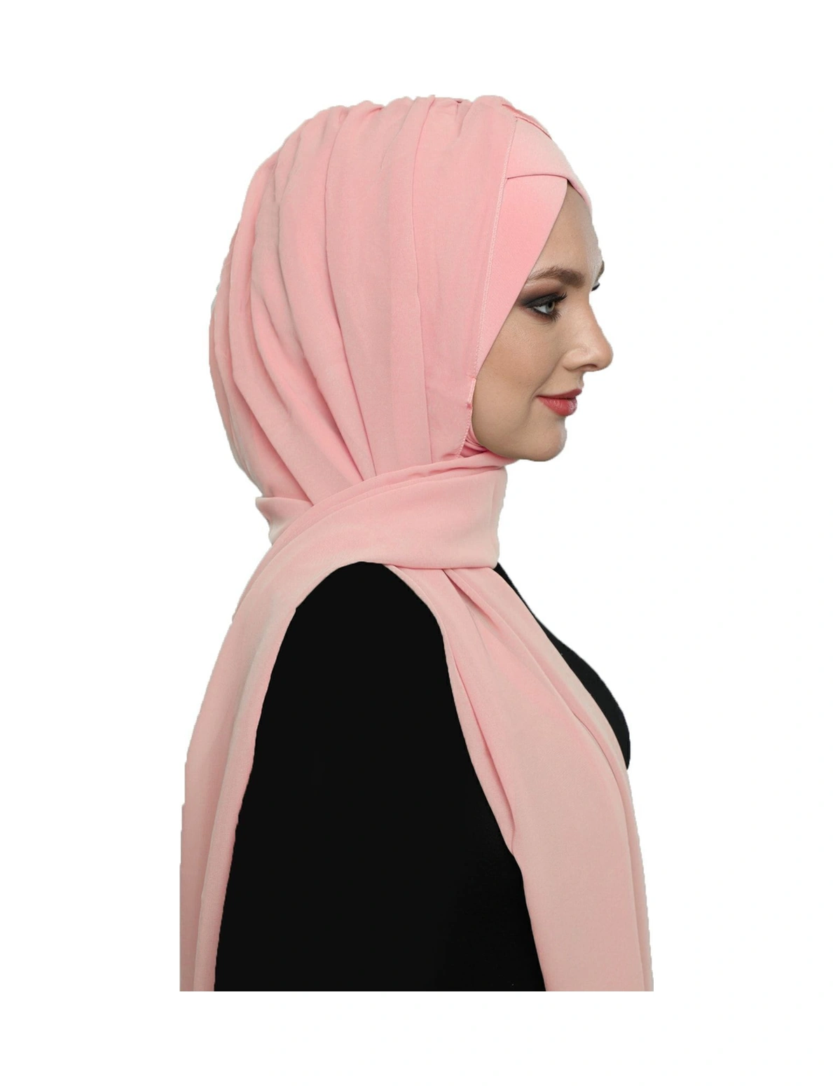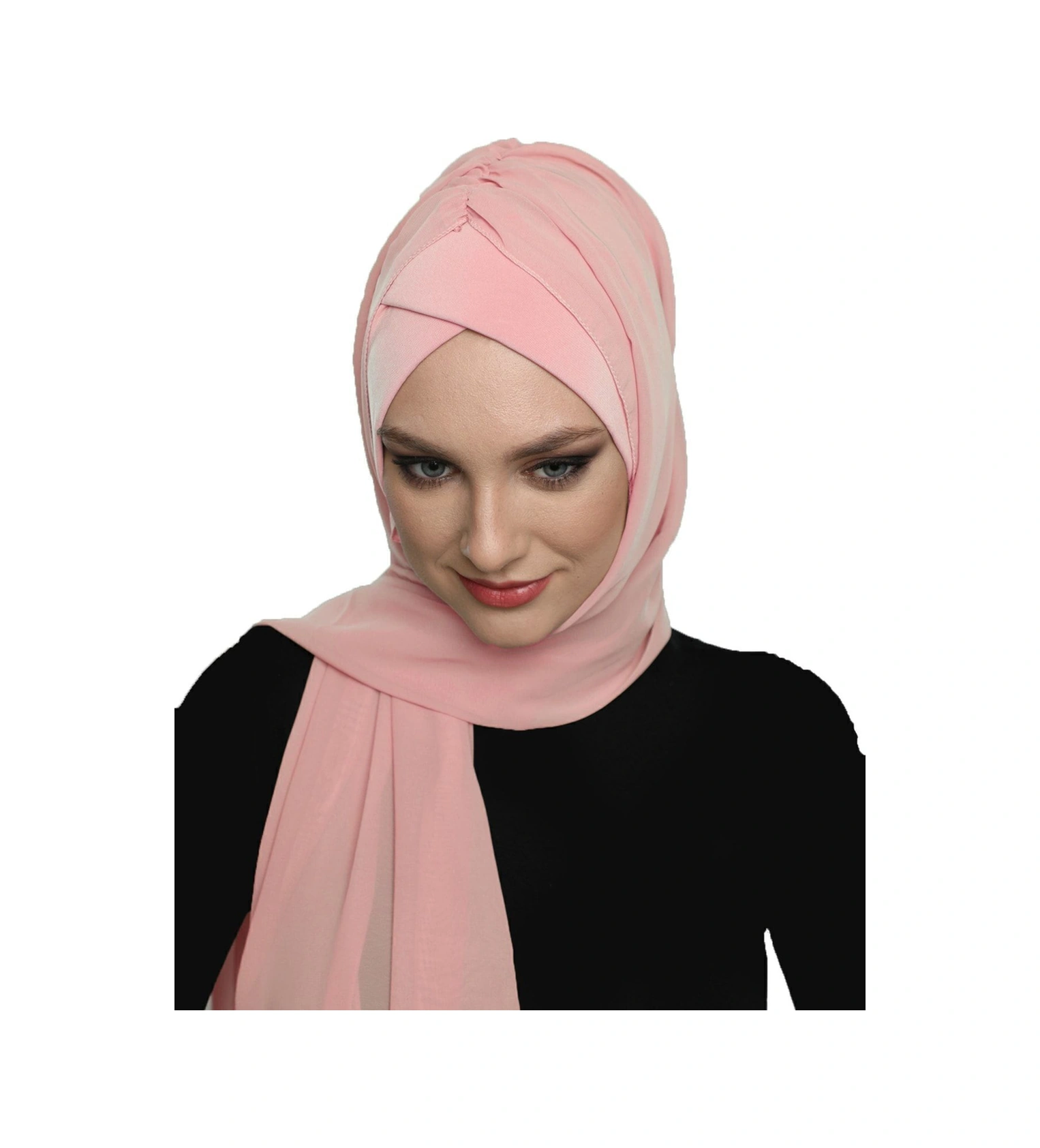 Şallı Takmatik Sade Pudra Hazır Türban Tesettür Bone Namaz Örtüsü Pudra