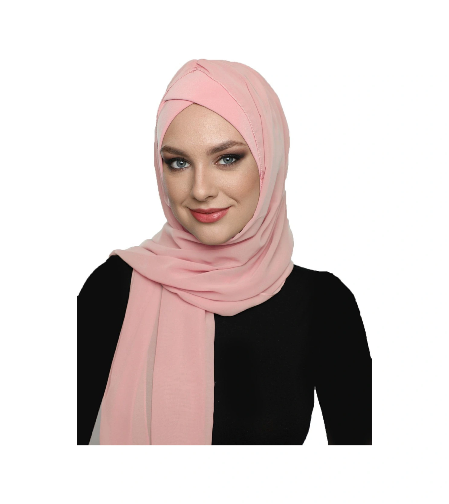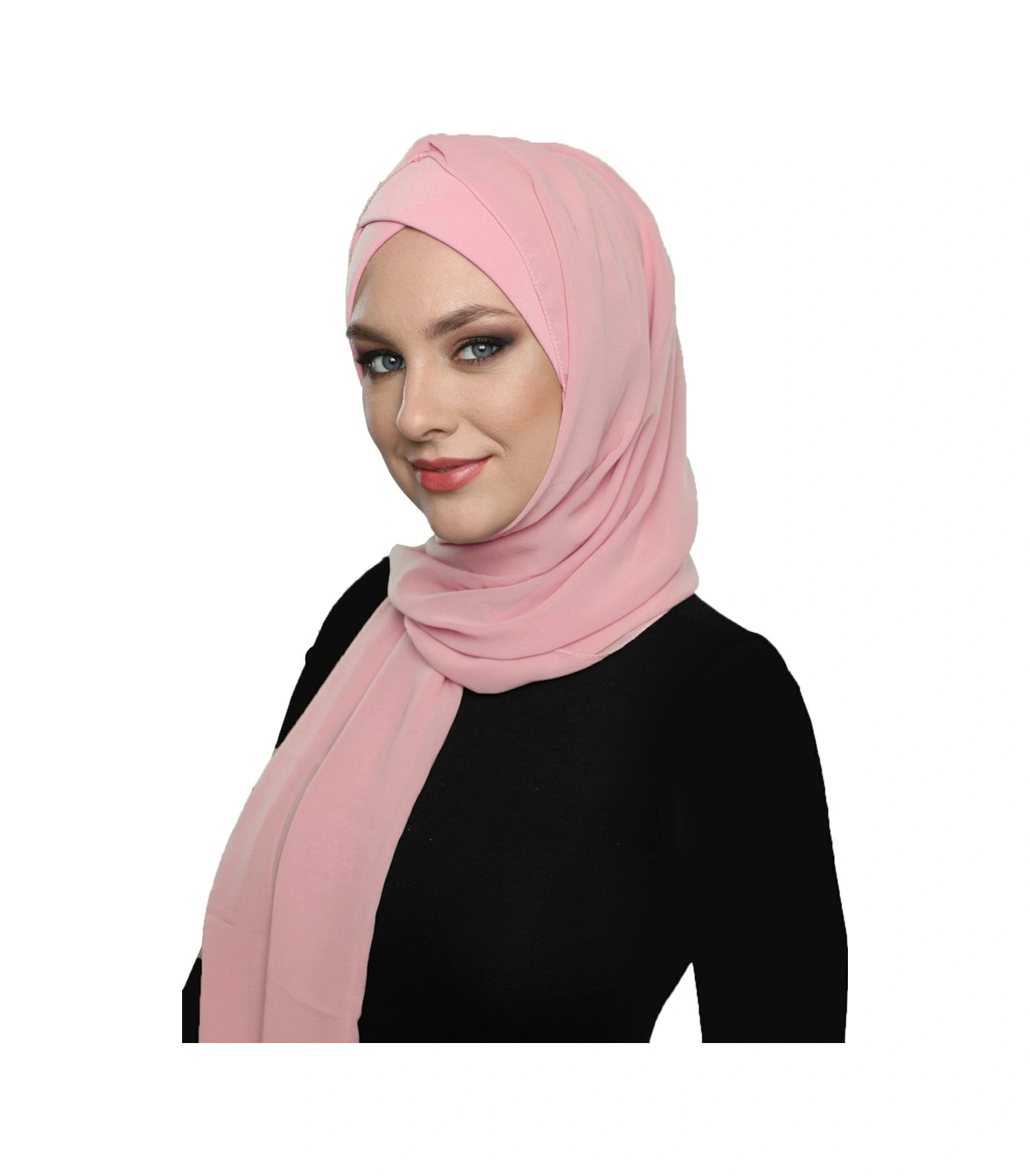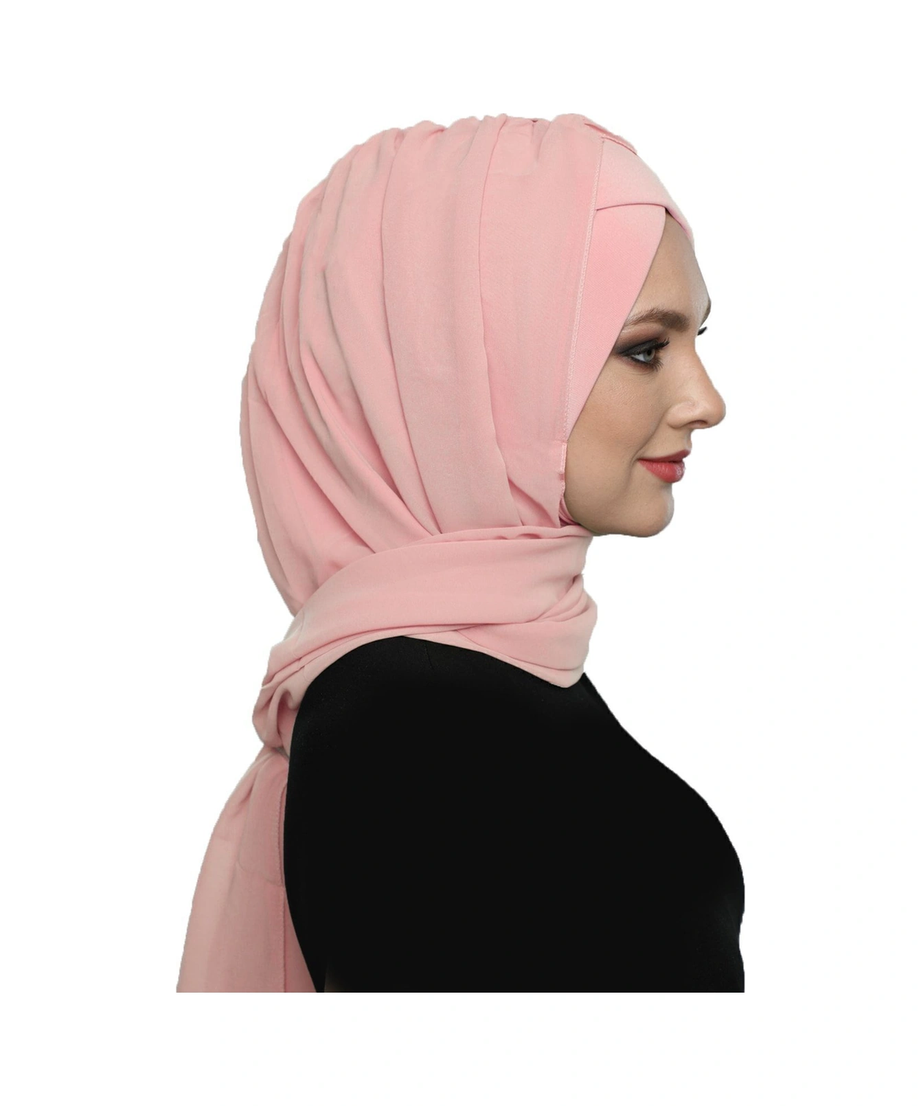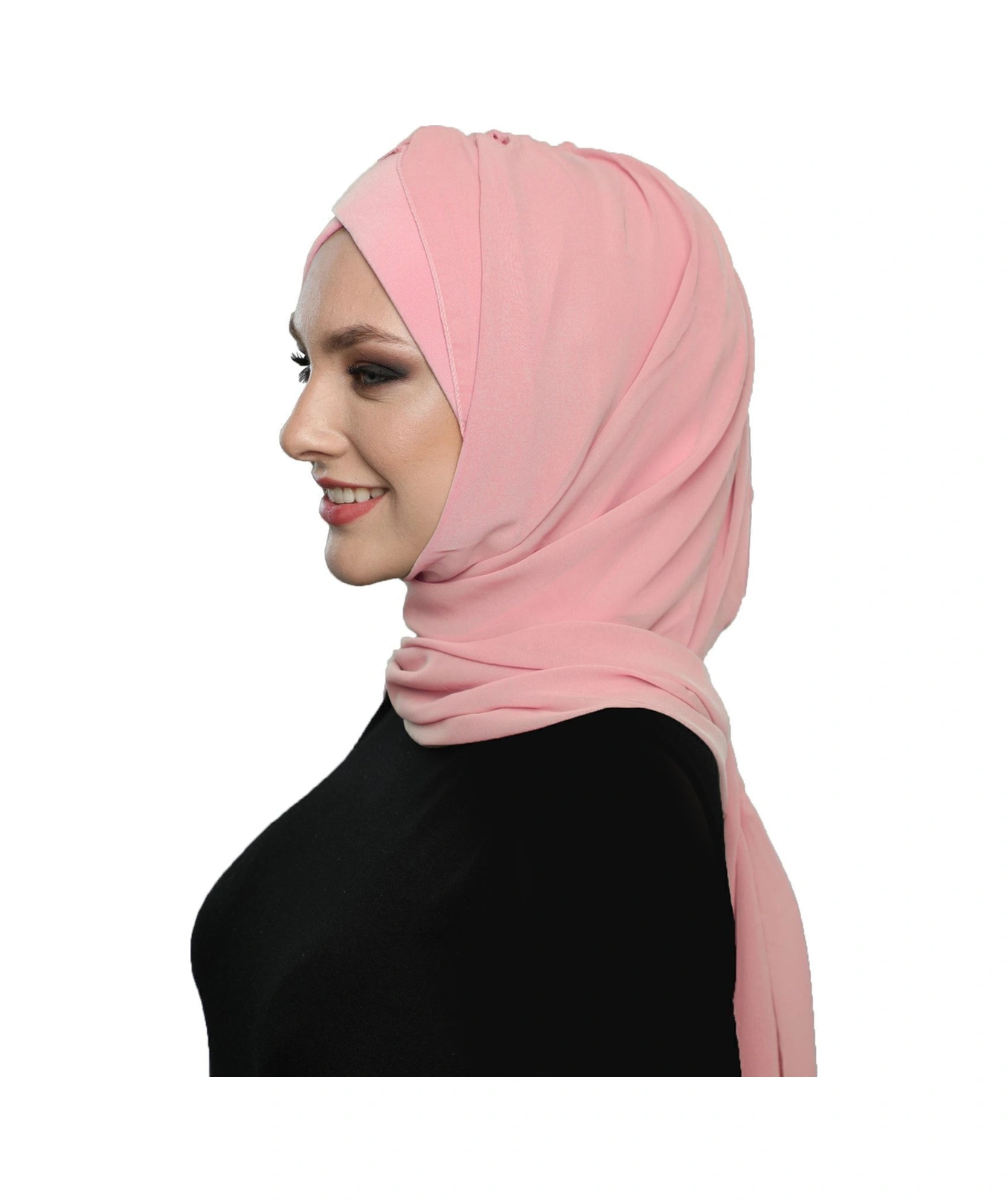 Şallı Takmatik Sade Pudra Hazır Türban Tesettür Bone Namaz Örtüsü Pudra