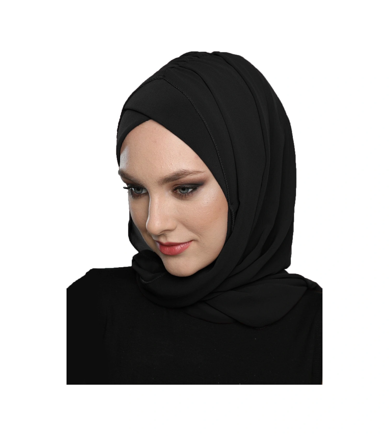 Şallı Takmatik Sade Siyah Hazır Türban Tesettür Bone Namaz Örtüsü Siyah