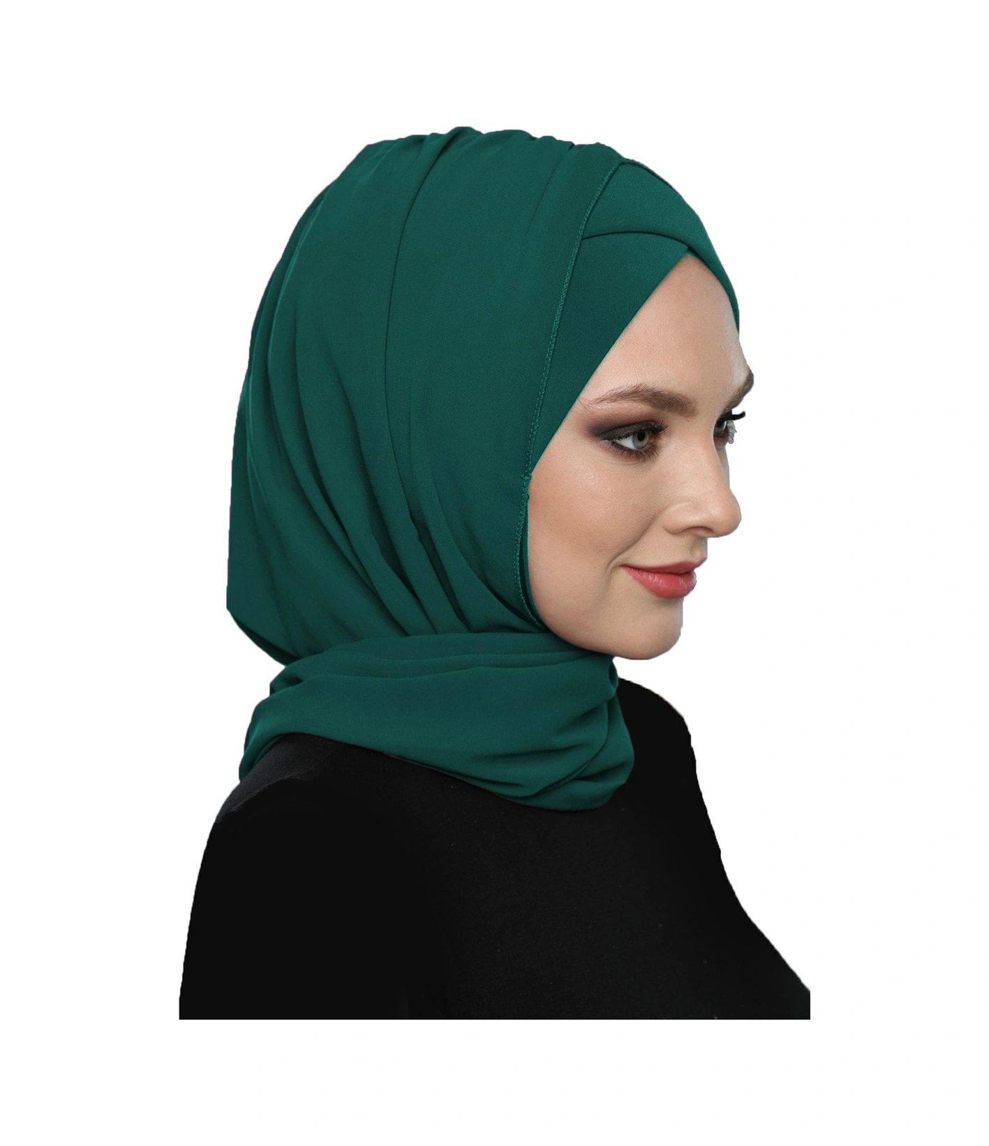 Şallı Takmatik Sade Yeşil Hazır Türban Tesettür Bone Namaz Örtüsü Hürrem
